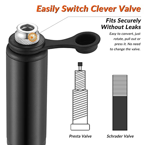 VALVOLA INTERCAMBIABILE PER SCHRADER E PRESTA: La valvola della pompa è dotata di 2 tipi di valvola cioè schrader e presta è adatte per maggiore parte delle biciclette, cambia facilmente tra loro basta rotare la testa di vavola.
