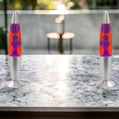 ROCKING GIFTS Lampada da Tavolo Lava 35 cm Rosso-Lilla con Interruttore, Include Lampadina E14, lampade al Plasma, Magma, Medusa dei Colori