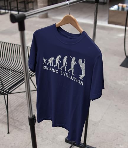 Rocking Guitar Player Evolution - Regalo di Compleanno di Musica | Uomini Presenti Maglietta Chitarra Divertente Blu Marino S