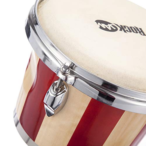 Rockjam RJ-100301 7 "e 8" Bongo BONGO Set con borsa imbottita e chiave di tuning Chiave rossa e striscia naturale
