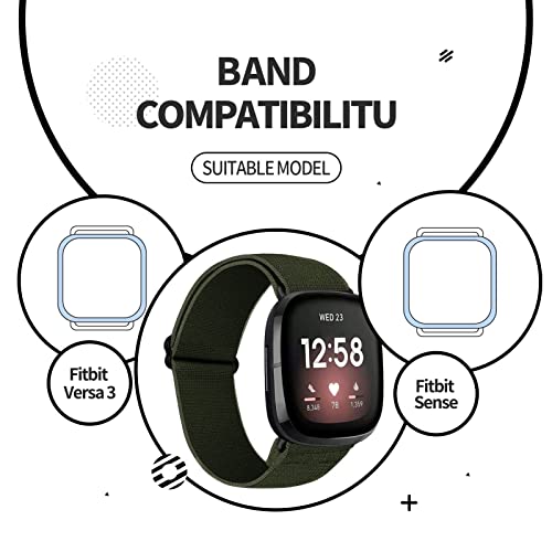RockloookY Pezzi 2 Cinturino elastico in nylon compatibile con Fitbit Versa 3/Fitbit Sence, cinturino di ricambio sportivo morbido per donna uomo(nero/verde militare)