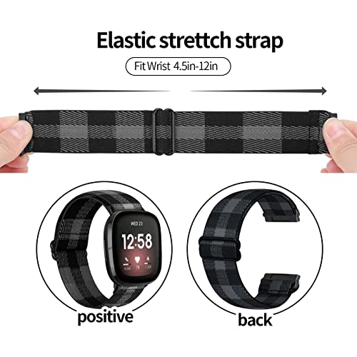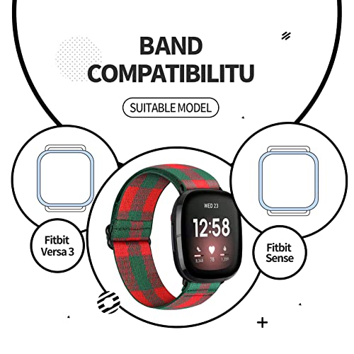 RockloookY Pezzi 2 Cinturino elastico in nylon compatibile con Fitbit Versa 3/Fitbit Sence, cinturino di ricambio sportivo morbido per donna uomo(Griglia grigia/rossa)