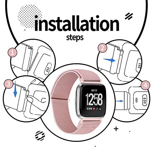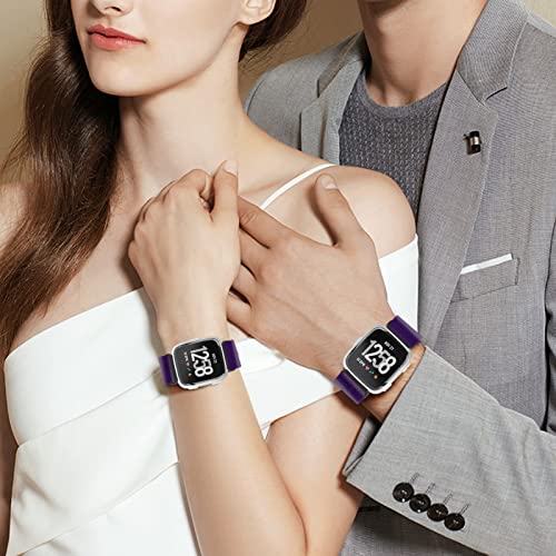 RockloookY Pezzi 2 Cinturino elastico in nylon compatibile con Fitbit Versa/Fitbit Versa 2/Fitbit Versa Lite, cinturino di ricambio sportivo morbido per donna uomo(rosa/viola)