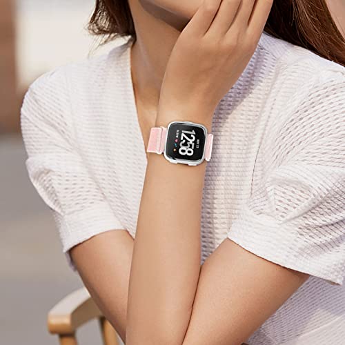 RockloookY Pezzi 2 Cinturino elastico in nylon compatibile con Fitbit Versa/Fitbit Versa 2/Fitbit Versa Lite, cinturino di ricambio sportivo morbido per donna uomo(verde militare/rosa)
