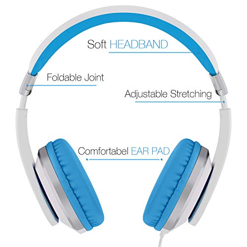 Rockpapa I20 Folletti Cuffie con Cavo, Stereo, Regolabili, con microfono per lettore MP3/4 CD/DVD iPod iPhone iPad PC Telefono Scuola Compressa Bianco Blu