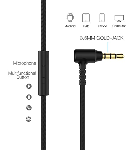 Microfoni in linea e jack da 3,5 mm: il cavo di nylon da 1,5 m con microfono in linea è più resistente e più facile da rispondere alle chiamate telefoniche, il jack a l da 3,5 mm è migliore per ridurre i danni al cavo
