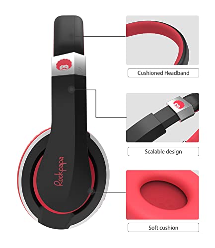 RockPapa I20 Folletti Cuffie con Cavo, Stereo, Regolabili, con microfono per lettore MP3/4 CD/DVD iPod iPhone iPad PC Telefono Scuola Compressa Nero Rosso
