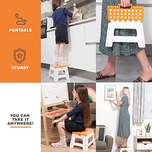 Rockssquare Sgabello pieghevole per adulti e bambini, altezza 40,5 cm, in plastica antiscivolo, pieghevole, pieghevole e portatile, con manico per il trasporto, per cucina, bagno, giardino ed esterno