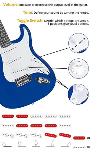 Rocktile Banger's Pack Set Chitarra Elettrica Blu - Kit Completo per Chitarre Elttriche con Amplificatore 25W, Custodia Morbida, Cavo, Tracolla, Tremolo, Plettri - Blue Highgloss