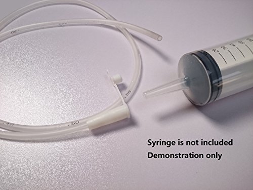 Lunghezza 97 cm Lunghezza tubo/tubo in silicone, con Mark (25,30,35,40,45,50,55,60 cm) CI sono 3 fori in lunghezza del tubo 1 cm, 6 cm, 11 cm, se non serve, basta tagliare fuori. Non è necessario adattatore extra per collegare tubo 150 ml/200 ml siringa con questa parte, il tubo ha una connessione per esso. Basta premere la siringa in. Imballaggio: singolo Grip Bag