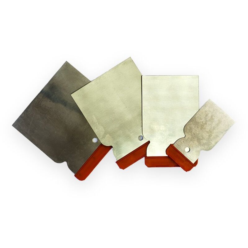 Kit di 4 spatole per il corpo. Per rifinire superfici irregolari. Lama in acciaio inox. Impugnature in plastica Misure 60, 80, 100 e 120 mm