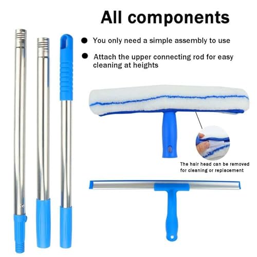 ❤ Kit completo per la pulizia dei vetri: questo kit include una lama in gomma da 35,6 cm, uno strumento per la pulizia dei vetri in microfibra e un manico lungo, il kit perfetto per la pulizia delle finestre per mantenere senza strisce di vetri, specchi e vetri.