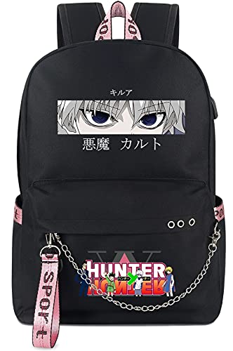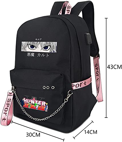 Roffatide Anime Hunter x Hunter Zaino per Laptop Borsa per Libri Scolastici Zaino con Porta di Ricarica USB e Porta per Cuffie Nero