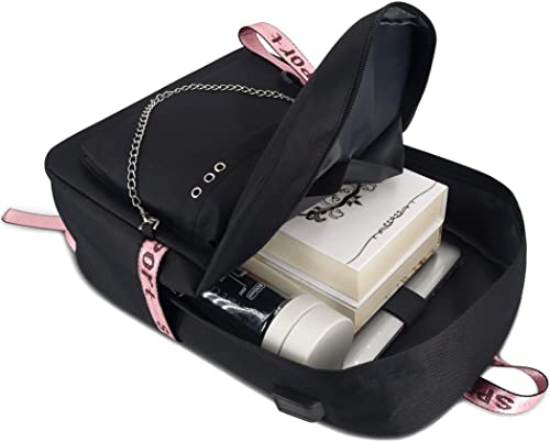 Design: Stampato con i personaggi dell'anime. Caratteristiche: Questo zaino anime dispone di spalline imbottite regolabili, catena in metallo rimovibile e passanti da polso. Cavo di estensione USB per una facile connessione al tuo power bank. Il cavo di estensione per cuffie da 3,5 mm per una facile connessione alle cuffie.