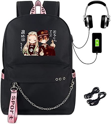 Roffatide Anime Toilet Bound Hanako Kun Zaino per Laptop Fit 15'' Zaino per Laptop da Viaggio con Porta di Ricarica USB e Porta per Cuffie