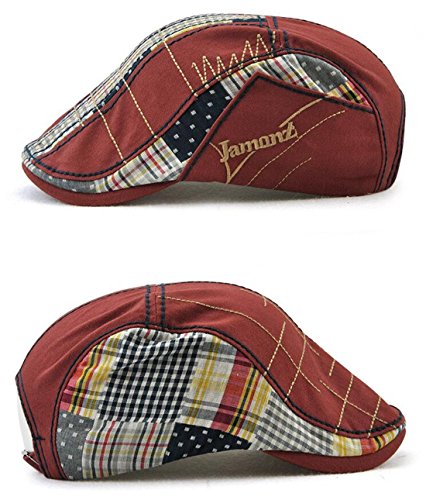 Roffatide Plaid Patchwork Cotone Ricamo Coppola Cappello Piatto Berretti Piatti Baschi Scozzesi Rosso