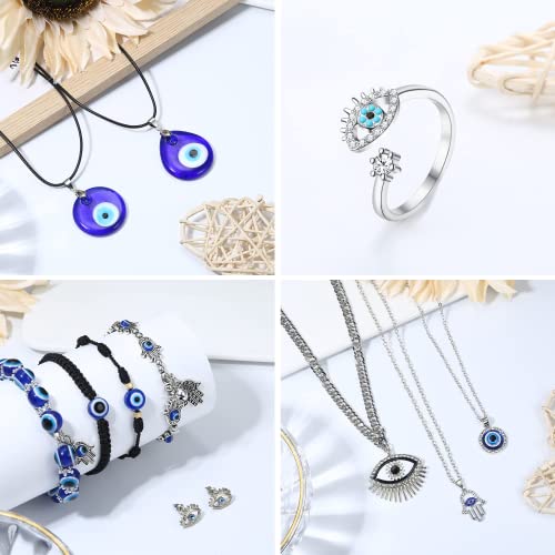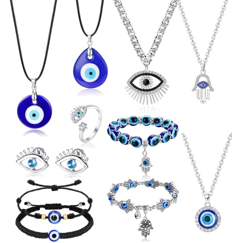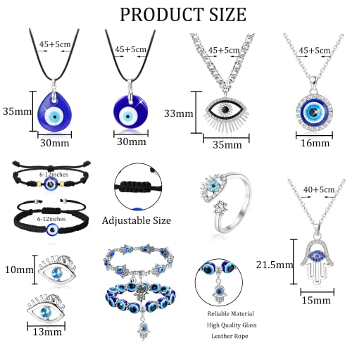 Roheafer 11Pcs Collana con Ciondolo per Occhio Malvagio per Donna Uomo Corda in Pelle Malocchio Collana Blu Turco Bracciale Orecchini Anello Set di Gioielli per Occhio Malvagio per Le Donne