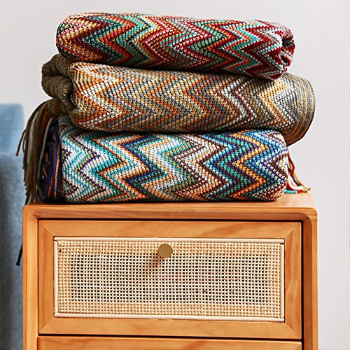 ROHNES Copridivano Bicolore in Cotone Naturale al 100%,copriletto in Tessuto con Nappe,copriletto per Divano,copridivano(Rosso,180 * 260cm)