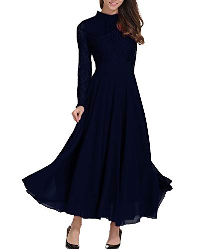 Roiii Maxi abito da sposa in chiffon lungo formale da sera da donna in pizzo, blu navy, 50