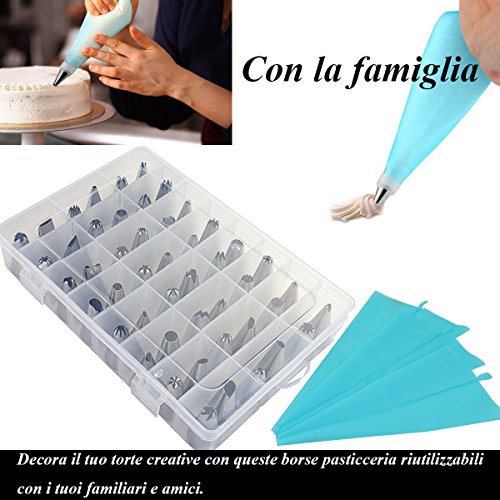 【Punte di decorazione della torta】48 punte in acciaio inox e 3 accoppiatori di plastica riutilizzabili