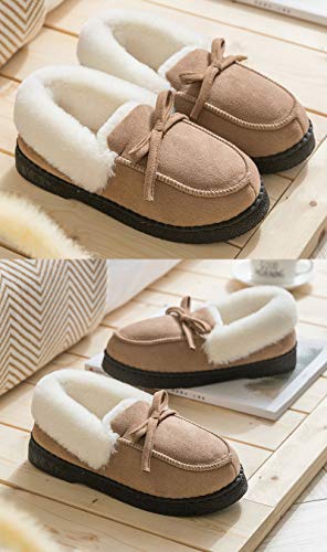 Rojeam Mocassini da Interno per Interni Foderati in Peluche da Donna in Pelle Scamosciata
