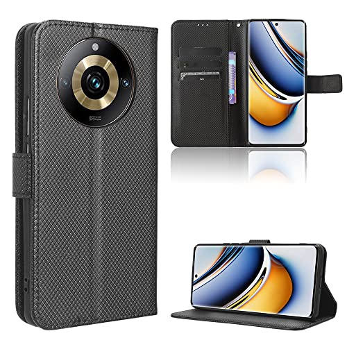 Rojeuinn Cover per Realme 11 Pro/Pro Plus custodie,Premium Portafoglio Magnetica Flip Case,Custodia con fibra di carbonio-Nero