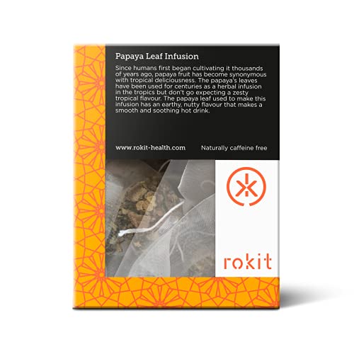 Rokit Teas | Foglie di Papaya | Tisane | 18 Bustine Di Tè Senza Candeggina | Biologici | Naturalmente Senza Caffeina | Facile Da Usare | 1 Scatola