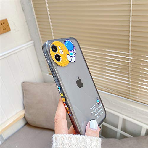 Rokmym - Custodia protettiva per iPhone 12 Pro, in silicone, trasparente, motivo: pianeti astronauti, anti-urto, anti-graffio, ultra sottile