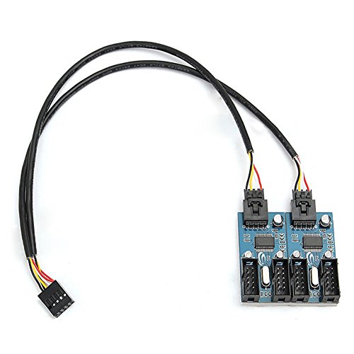 Rokoo - Connettore USB, 9 pin, da 1 a 4 cavi estensori femmina, USB 2.0, hub/moltiplicatore a più porte