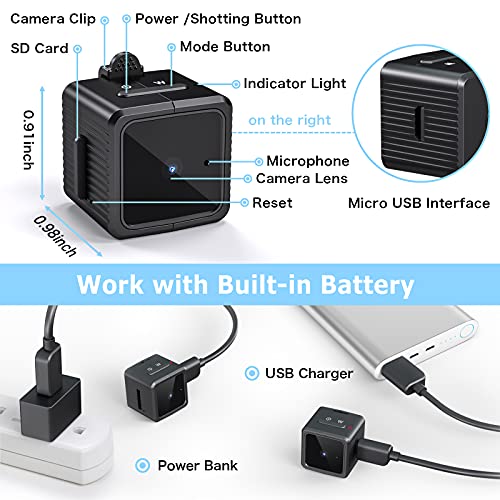 【Mini fotocamera ad alta definizione】Questa mini fotocamera offre insieme alla registrazione incredibile 1080P FHD video registrazione e modalità foto. Può supportare una scheda micro SD da 4-32 GB. Non è necessario acquistarla separatamente, una scheda di memoria da 32 GB è inclusa.