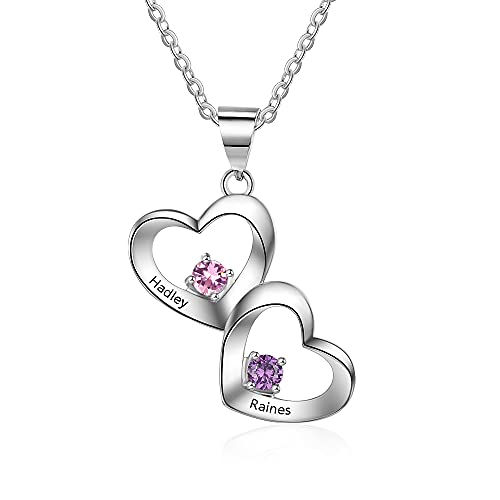 RolaOnly Collana Cuore Gioielli Donna Incisione 2 Nomi Birthstone Ciondolo Madre Figlia Regali per la Festa della Mamma Personalizzato