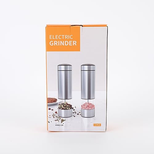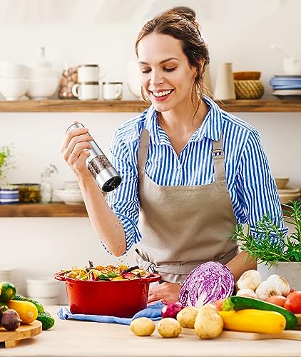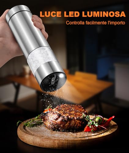Rolgno Macina Pepe Elettrico, [2 Pezzi] Macina Sale Pepe Automatico in Acciaio Inossidabile, Funzionamento con Una Sola Mano, Luce a LED & Ruvidità Regolabile, Spazzola Pulizia, Alimentazione Batteria