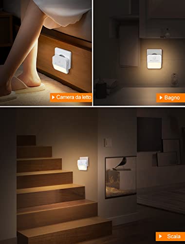 Rolgno Luce Notturna Bambini [2 Pezzi], Luce Notturna da Presa con Sensore Movimento & 5 Livelli Luminosità, Regolabile Lampada Notturna per Bambini, Bagno, Corridoio, Cucina, Scale, Camerette