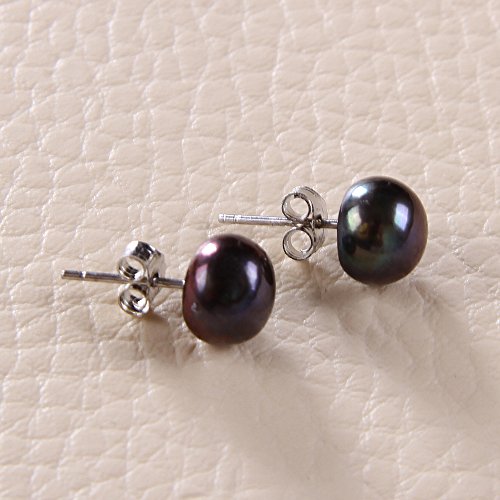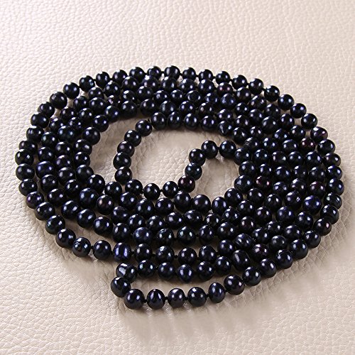 Rolicia AA grado 8-9mm 65Inches 165cm d'acqua dolce coltivato nero collana di perle corrispondente orecchino della vite prigioniera in scatola regalo