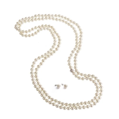 Rolicia AA Grado 8-9mm 65Inches 165cm collana bianca coltivata in acqua dolce coltivata orecchino di corrispondenza della vite prigioniera
