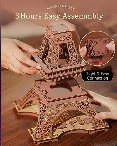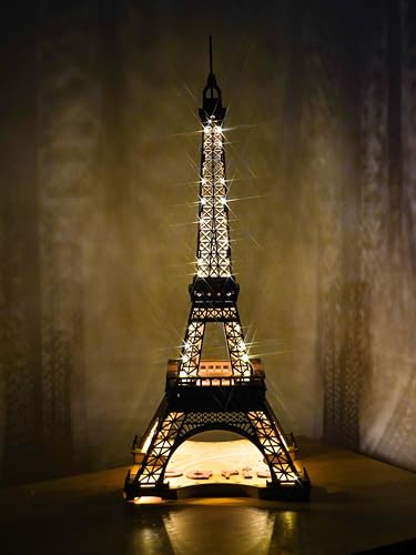 Rolife Torre Eiffel con luce-puzzle in legno 3D decorazione scrivania casa regalo per ragazzi e adulti