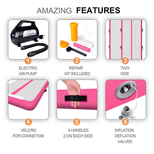 ▶MATERIALE RESISTENTE E DUREVOLE: Tappetino Ginnastica Gonfiabile 2/3/4/5/6/7/8/9/10/11/12M, Il nostro materassino per allenamento è realizzato in materiale a doppio strato (conosciuto anche come materiale a goccia d'ago) e telone in PVC durevole di grado commerciale con spessore di 0,9 mm. Eccellente tenuta d'aria, resistente all'usura e lunga vita di servizio