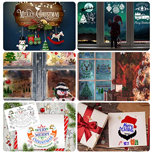 Rolin Roly 12Pcs Natale Stencil di Pittura Stencil Riutilizzabili Plastica Modelli di Disegno di Pittura di Natale DIY Pittura Template per Scrapbooking Card Decorazione da Parete