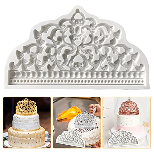 ✿Stampo per corona retrò: otterrai uno stampo per fondente con perla corona cava, le sue dimensioni sono: 20,5 * 11,6 * 1,5 cm (8,07 * 4,57 * 0,59 pollici, pesa circa: 195 g), il lavoro realizzato dal nostro stampo per fondente ha un aspetto squisito in linea con il tema dell'evento è uno strumento ideale per la cucina di casa.