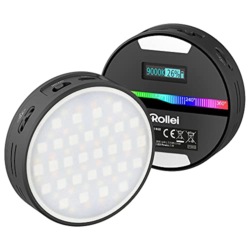 Rollei Lumis Round RGB, 28564, luce di lunga durata RGB con 360 colori e splendidi effetti luminosi, LED rotondo compatto con magnete per il fissaggio al metallo, colore: nero