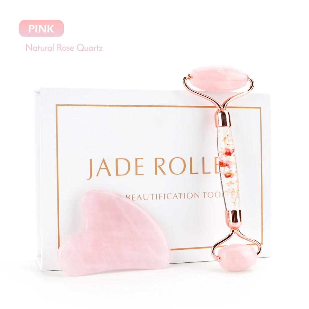 New Jade Roller Facial Face Jade Massage Roller Rose Quartz Scraper Jade Massager Tools Slimming Face Natural Wrinkle Removal
