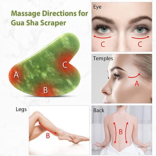 Jade Roller Viso e Gua Sha di Giada Kit Jade Roller Massager Naturale Rullo di Giada Massaggiatore Jade Roller Viso Gua Sha Scraping Tools, per Donne Ragazze Occhi, Viso, Collo (3 Pezzi)