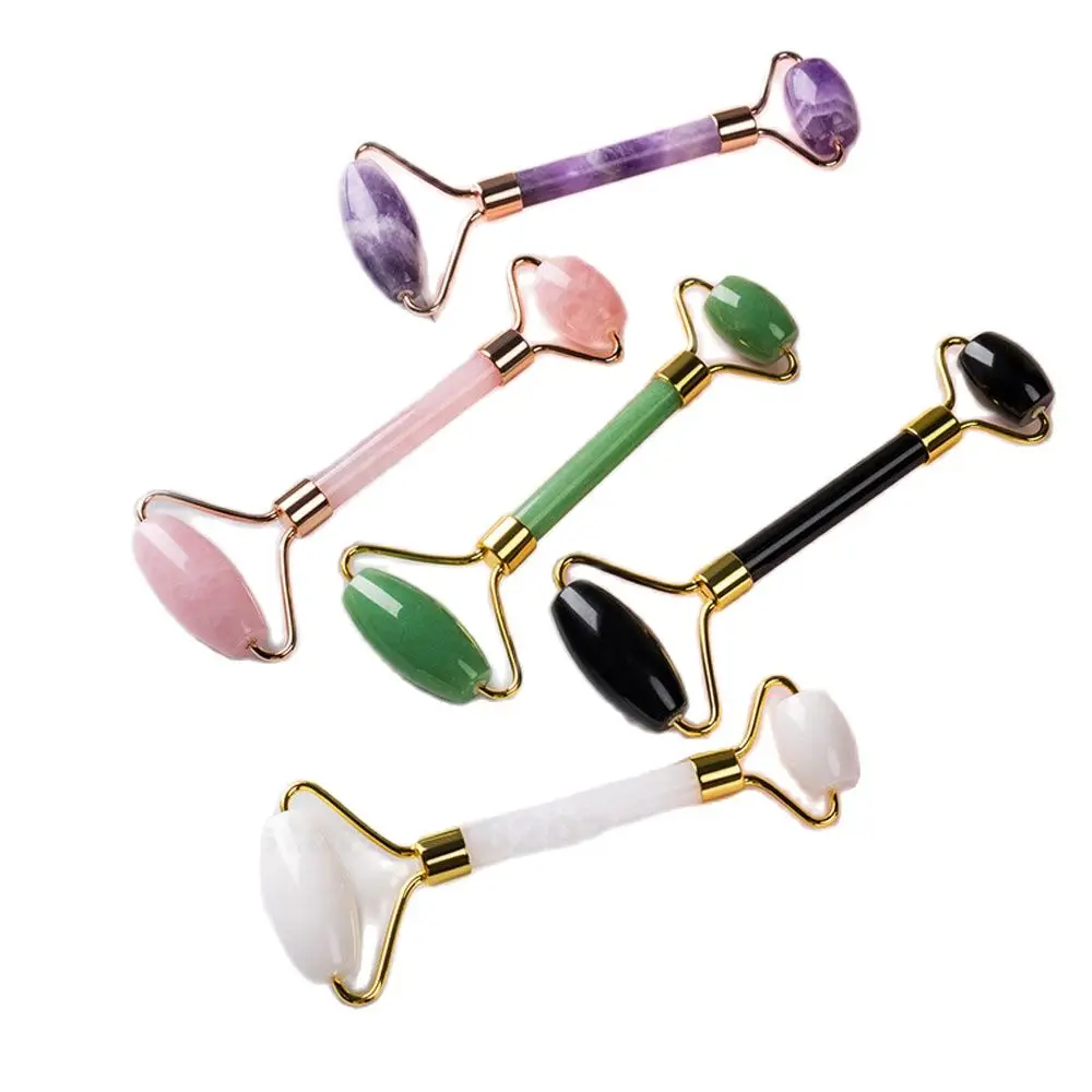 Face Roller Massage Jade Stone Roller Rose Quartz Lift Up For Face Eye Chin Natural Crystal Massager Thin Beauty Slimming Tools