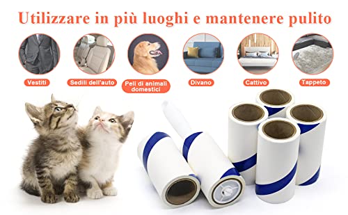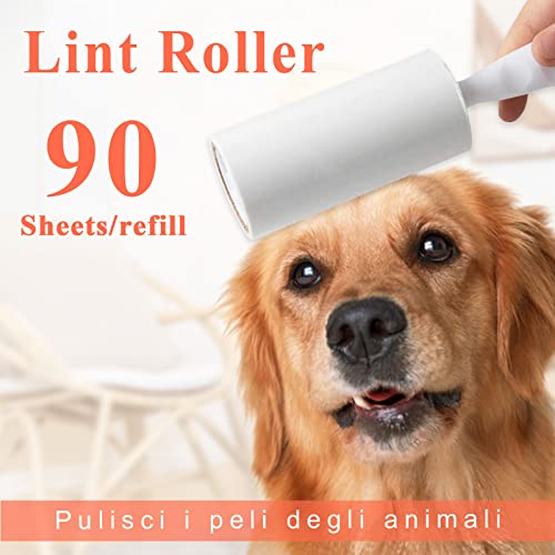 Lint Roller Set, Pet Hair Removal Brush Roller, Lint Animal Hair Rolls Adhesive Rollers, Consisting of 1 plastic handle and 6 refills of 90 sheets, (540 sheets in total), BOMEI PACK