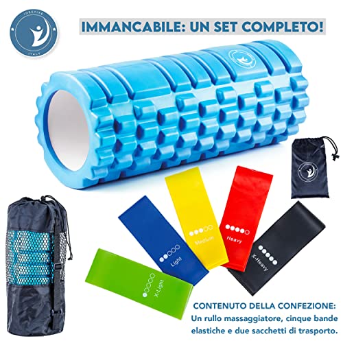 Foam Roller Rullo Massaggio Muscolare Resistente Fino A 120 Kg Fasce Elastiche 5 Resistenze Kit Multifunzione Ginnastica Pilates Yoga Correttiva Crossfit Pre-post Allenamento Uomo Donna home gym