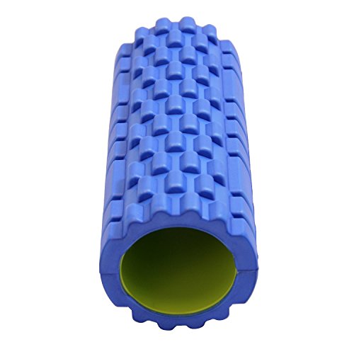 Foam roller Rullo massaggio + PDF workout 3D con 20 esercizi (Blu scanalato)