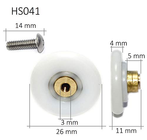 Rolli Cuscinetti Box Doccia Ricambio Ottone Rullo Runner 26mm Rulli HS041 8 pezzi e Viti