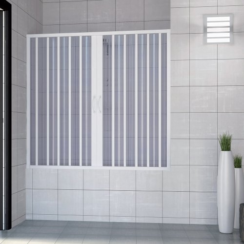 Porta doccia sopravasca estensibile in PVC (cloruro di polivinile: materiale riciclabile, durevole e robusto) con apertura centrale e ante doppie a soffietto
