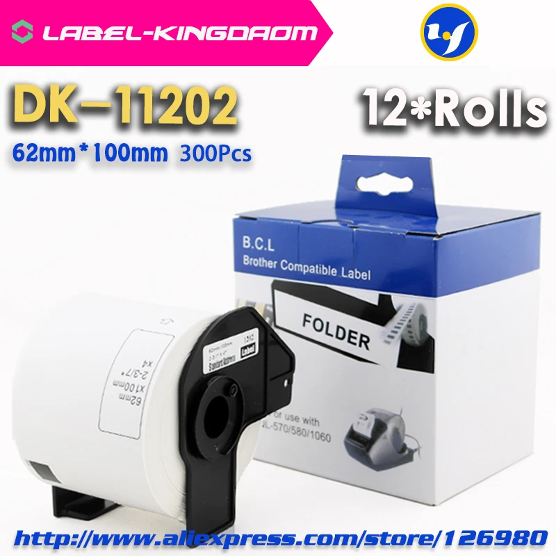 12 Rolls Compatible DK-11202 Label 62mm*100mm Compatible for Brother Label Printer All Come With Plastic Holder 300Pcs/Roll