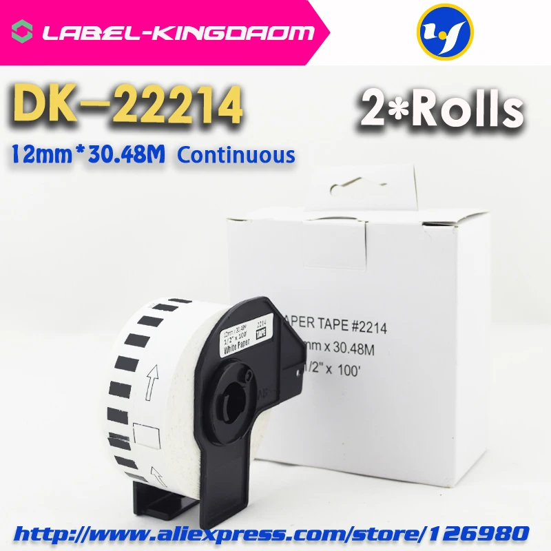 2 Rolls Generic DK-22214 Label 12mm*30.48M Continuous Compatible for Brother Printer QL-570/700 All Include Plastic Holder